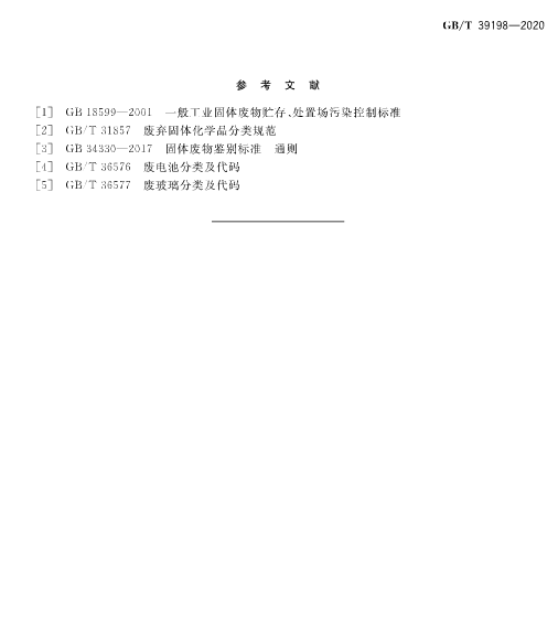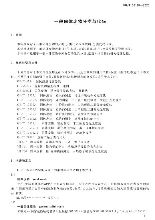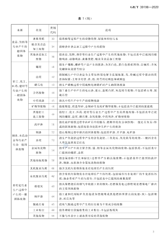 GB/T 39198-2020《一(yī)般固體(tǐ)廢物(wù)分(fēn)類與代碼》于2020年(nián)10月(yuè)11日(rì)經國(guó)家(jiā)市(shì)場(ch≈ǎng)監督管理(lǐ)總局(國(guó)家(jiā)标準化(huà)管理(lǐ)委員(yuán)會(huì))批準發布,自(zì)2021年(nián)5月(yuè)1日(rì)起實施。
