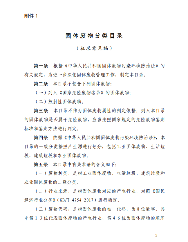附件(jiàn):1.固體(tǐ)廢物(wù)分(fēn)類目錄(征求意見(jiàn)稿)