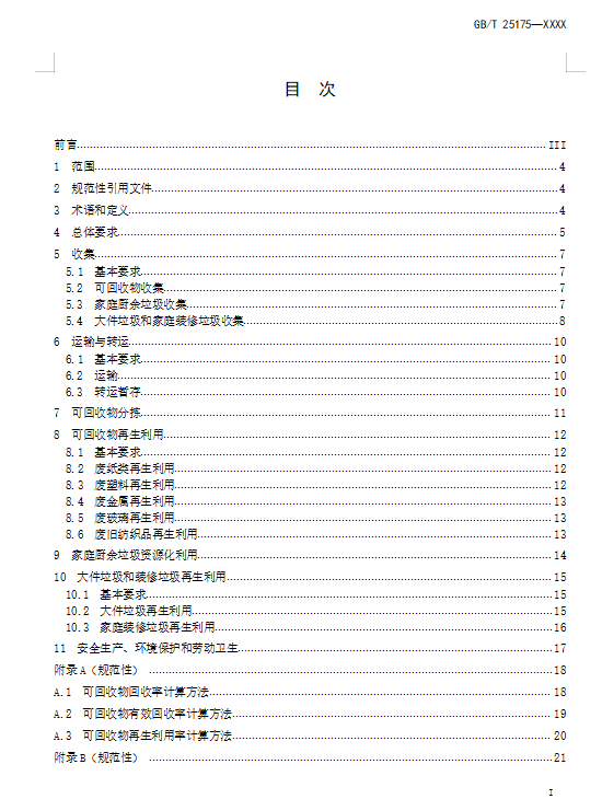 附件(jiàn):《生(shēng)活垃圾回收利用(yòng)技(jì)術(shù)要(yào)求》(征求意見(jiàn)稿)