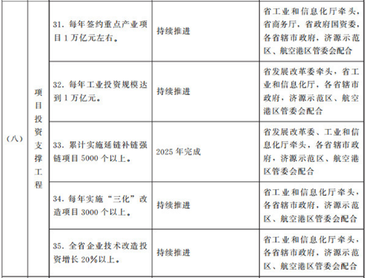 2.實施工(gōng)業(yè)萬億投資行(xíng)動。強化(huà)“三個(gè)一(yī)批”等省重點産業(yè)∑項目推進實施,持續開(kāi)展項目建設活動。完善項目全生(shēng)命周期服務機(jī)制(zhì),建立省、市(shì)級領導分(fēn)級包聯重大(dà)項目機(jīβ)制(zhì),著(zhe)力協調解決項目推進各類難題,确保項目順利實施。建立完善重點項目監測服務平台,到(dào)202✔5年(nián),力争每年(nián)工(gōng)業(yè)投資規模達到(dào)1萬億元、累計(jì)∏實施延鏈補鏈強鏈項目5000個(gè)以上(shàng)。(責任單位:省發展改革委、工(gōng)業(yγè)和(hé)信息化(huà)廳,各省轄市(shì)政府,濟源示範區(qū)、航空(kōng)港區(qū)管委φ會(huì))