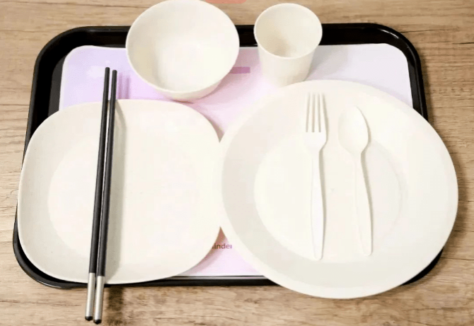 提供給賓客的(de)餐具為(wèi)可(kě)降解環保材料,刀(dāo)叉勺采用(yòng)PLA材質,餐盤、碗采用(yòng)稻殼材質,從(cóng)空(kōng)間(jiān)布置到(dào) 餐盤餐具上(shàng),真正落實并打造一(yī)個(gè)“無廢”就(jiù)餐空(kōng)間(jiān)。