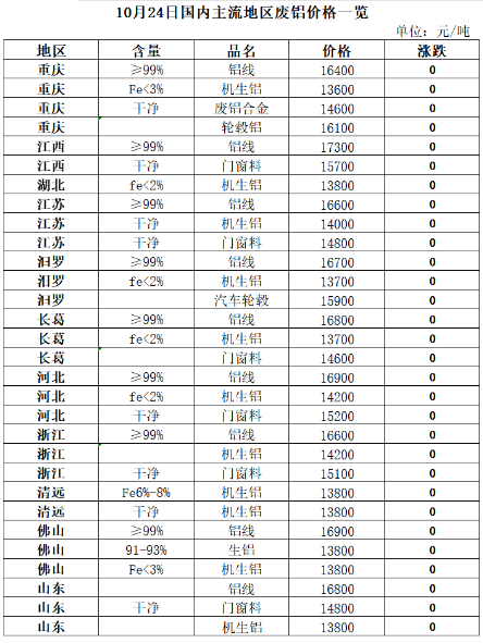 廢鋁:今日(rì)中國(guó)再生(shēng)資源廢鋁價格指數(shù)13847元/噸,較昨日(rì)持平。隔夜倫鋁高(gāo)開(kāi)後震蕩走低(dī),而後逐步攀升,尾盤收跌,盤終δ跌4美(měi)元/噸至2176美(měi)元/噸。滬鋁夜盤高(gāo)開(kāi)後下(xià)行(xíng),而後弱勢波動,尾盤收穩,主力∏近(jìn)月(yuè)重合維穩至18905元/噸。昨日(rì)廢鋁市(shì)場(chǎng)主流降100元/噸,目前下(xià)遊需求表現(xiàn)偏弱,部分(fēn)企業(yè)原料庫存相(xiàng)對(duì)充足,對(duì)廢鋁需求表現(xiàn)偏弱。今日(rì)價格持穩δ。