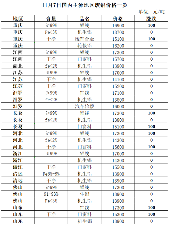 廢鋁:今日(rì)中國(guó)再生(shēng)資源廢鋁價格指數(shù)13947元/噸,較昨日(rì)持平。隔夜倫鋁低(dī)開(kāi)後震蕩走高(gāo),尾盤收漲,盤終漲29.$5美(měi)元/噸至2286美(měi)元/噸。滬鋁夜盤高(gāo)開(kāi)後偏強震蕩,主力漲170元/噸至19335元/噸®,近(jìn)月(yuè)漲180元/噸至19380元/噸。昨日(rì)廢鋁市(shì)場(chǎng)主流持穩,部分(fēn)市(shì)場(chǎng)降100元/噸,成交情況偏弱,貿易商到♦(dào)貨量不(bù)多(duō),下(xià)遊廠(chǎng)家(jiā)需求一(yī)般。預計(jì)今日(rì)價格盤整運行(xíng)。