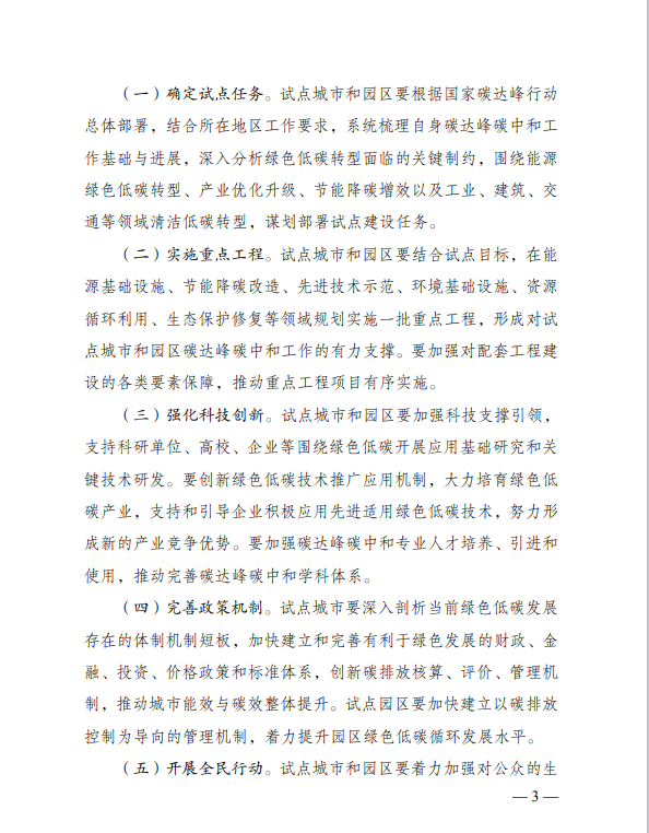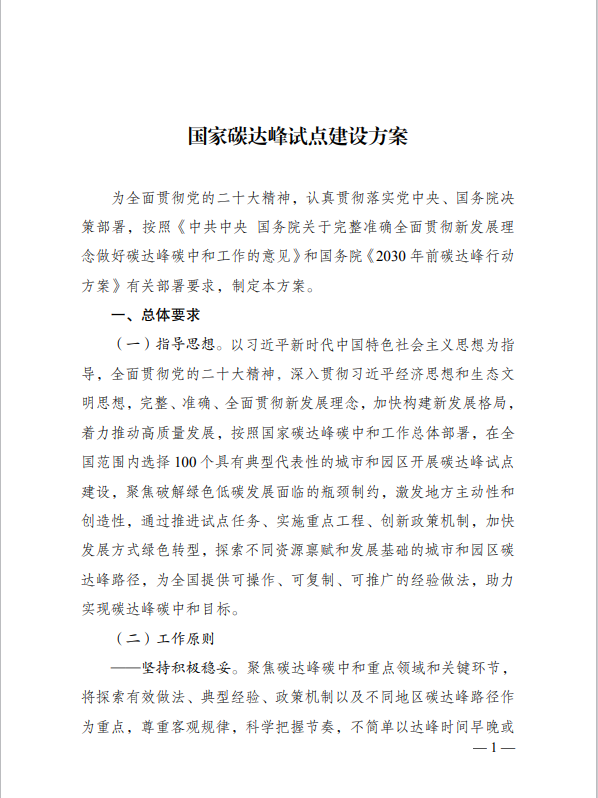 《國(guó)家(jiā)碳達峰試點建設方案》的(de)通(tōng)知(zhī)