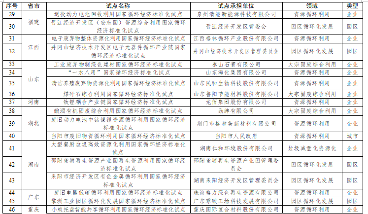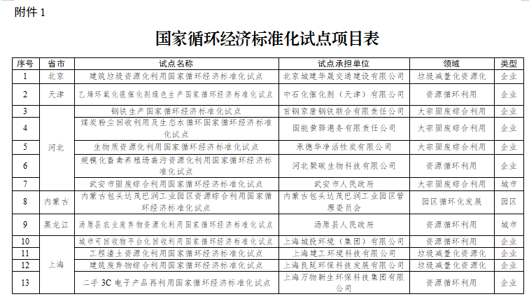 1. 國(guó)家(jiā)循環經濟标準化(huà)試點項目表.docx