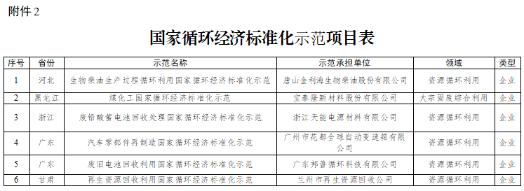 2. 國(guó)家(jiā)循環經濟标準化(huà)示範項目表.docx