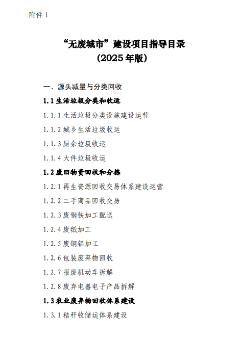 1.“無廢城(chéng)市(shì)”建設項目指導目錄(2025年(nián)版)